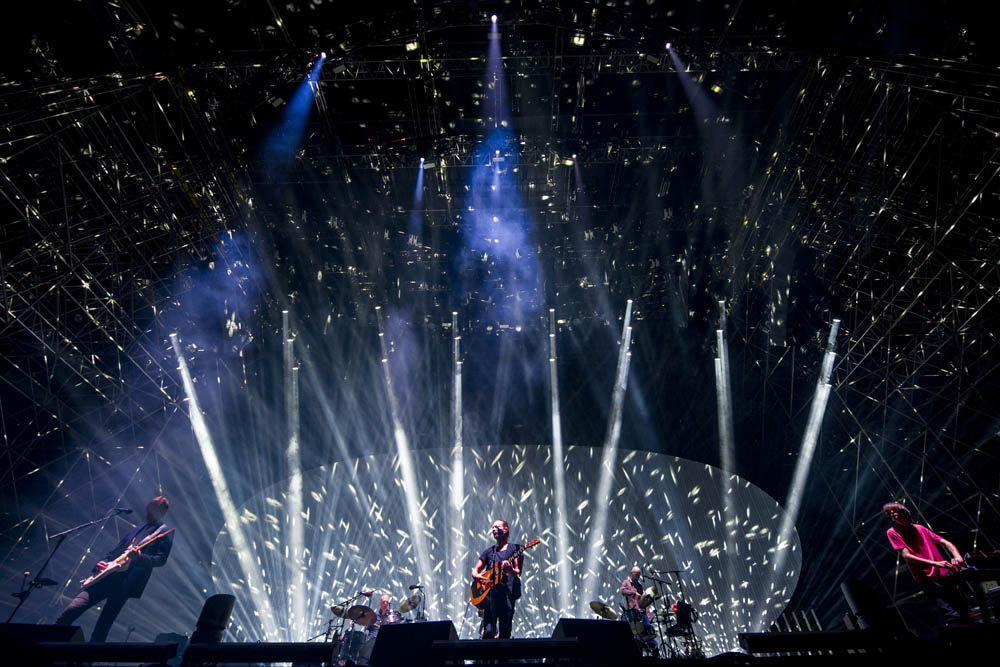 Molte le persone che già dalle tre del pomeriggio, sotto un sole cocente, affollano gli ingressi. La musica ha iniziato a riempire l’anima del luogo alle 18.45 con Junun, il progetto lanciato da Jonny Greenwood e Shye Ben Tzur e alle 19.45 con l’eccellente James Blake. Il livello si innalza inevitabilmente con l’entrata in scena dei tanto attesi ex-ragazzi di Oxford.