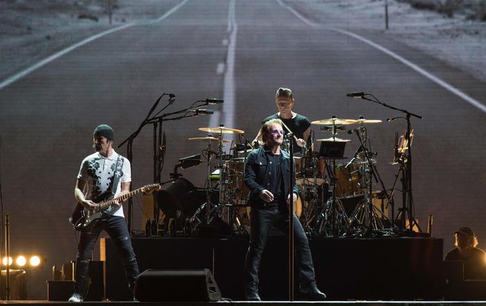 Quando parte Where The Streets have no names, sull’enorme maxischermo alle spalle della band appare l’inconfondibile sagoma del Joshua Tree, su un sanguinario sfondo rosso. In un paio di passaggi, più politici, il bersaglio è il presidente degli Stati Uniti. Ma ci sono, soprattutto nei numerosi bis, anche richiami ai diritti civili (Miss Sarajevo nel 2017 è diventata Miss Syria, con un video che racconta la storia di una bambina in un campo profughi), democrazia negata, cambiamenti climatici, migrazioni (con un ringraziamento anche all’Italia anche per il suo impegno nell’accoglienza ai migranti), l’omaggio alle donne con una sfilata di foto di figure femminili da Rosa Parks a Patti Smith, affiancate ad Angela Merkel e Christine Lagarde. Il finale è un crescendo con Beautiful Day, Elevation, Vertigo, Ultraviolet, One, Litte Things. L’acustica dell’Olimpico non rende giustizia al rock degli U2, ma il pubblico balla e canta comunque a squarciagola per tutto il concerto.