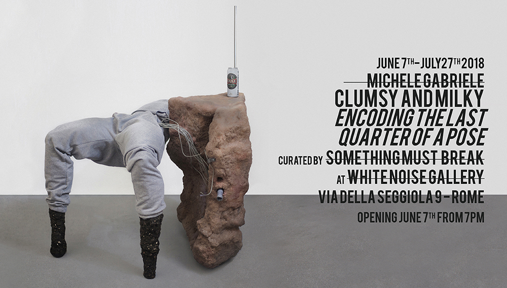 Questo interrogativo è il fulcro di “Clumsy and Milky: encoding the last quarter of a pose”, la prima personale romana di Michele Gabriele, che inaugura il 7 giugno nella nuova sede della White Noise Gallery a via della Seggiola, 9. La mostra dell’artista milanese presenta un allestimento di opere inedite curate dal progetto Something Must Break.