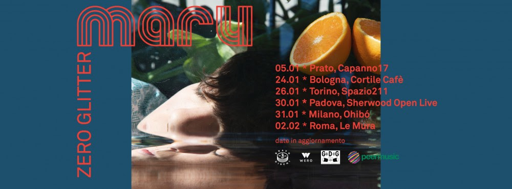 Comincia il 5 gennaio dal Capanno17 di Prato il tour di Maru, che si prepara a presentare in tutta Italia il suo Zero Glitter, il nuovo album uscito per Bravo Dischi. (Ascoltalo qui: https://spoti.fi/2TAdWlc). Una serie di live pieni di energia ed emozioni, dove la giovane cantautrice con leggerezza e ironia vuole gridare al pubblico il segreto della felicità: accettarsi e lasciarsi accettare.