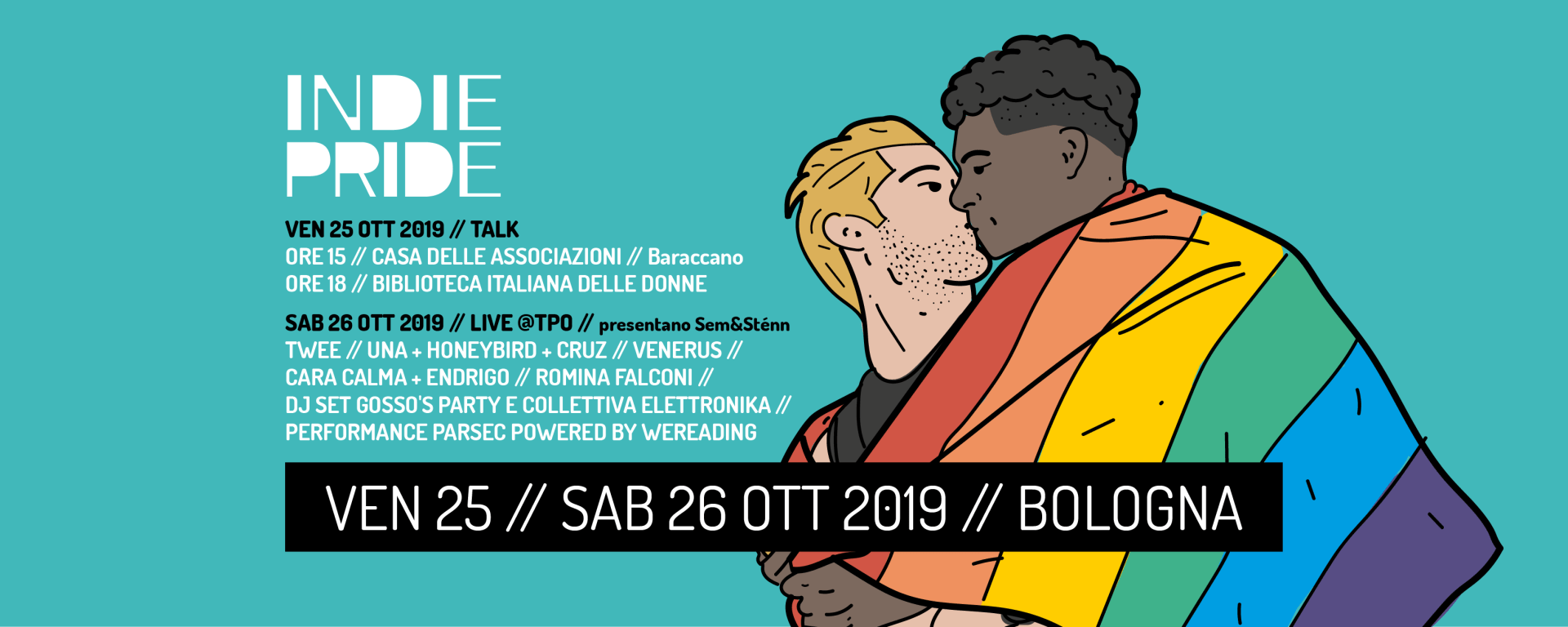 Indie Pride, i prossimi 25 e 26 ottobre, giunge al suo appuntamento annuale raddoppiando, con la volontà di rendere la due giorni un momento di sintesi in cui raccontare un anno di lavoro e, soprattutto, per mettere le basi per l’inizio di nuovi progetti. Mentre venerdì 25 ottobre sarà incentrato sulle parole ed il confronto, il 26 sarà, come nelle scorso edizioni, incentrato sula musica. Il 2019 per l’Associazione è stato l’anno in cui consolidare vecchie collaborazioni ma anche in cui crearne delle nuove. Si è iniziato lo scorso marzo quando Indie Pride è stata ospitata all’interno di Malto, festival dei birrifici artigianali organizzato da Unipol Arena; ad aprile si è proseguito con WeReading realizzando il talk “Il potere della musica e la responsabilità che ne deriva” all’interno del Festival di Antropologia dell’Università di Bologna. La collaborazione con WeReading, inziata l’anno scorso, è proseguita portando all’interno del loro festival lo spettacolo/lettura de La Rappresentante di Lista “Anatomia Fantastica“: un esperimento poi proseguito, sempre insieme a WeReading, nella rassegna gARTen di Correggio (RE) e che oggi continua venendo proposto su territorio nazionale. Dopo un passaggio a Padova all’interno del Parco della Musica in compagnia dei rovere e Maru a giugno si è, poi, rinnovata la collaborazione con il Locomotiv Club e il Biografilm Festival portando al Bio Parco Dutch Nazari ed Era Serenase, in una serata a sostegno della lotta contro omotransfobia, bullismo e sessismo. A luglio Indie Pride ha portato i suoi temi all’Oltre Festival di Bologna e all’Indimenticabile Festival per poi scendere in puglia al SEI – Sud Est Indipendent Festival in provincia di Otranto, dove ha riproposto il talk “Il potere della musica e la responsabilità che ne deriva” insieme a Sem&Stenn, La Rappresentante di Lista, Any Other, UNA, Respiro e l’Associazione LeA ma ha anche parlato, a nome di e in collaborazione con la rete shesaid.so del ruolo delle donne nel mondo della musica, insieme a Cristiana Verardo, Alessandra Contini, Matilde Davoli e Moiné. Giunta a settembre, Indie Pride non solo si presenta a Tutto Molto Bello con una squadra colorata che ha portato la lotta al sessismo, bullismo e omotransfobia dentro e fuori dal campo, affiancata da Some Prefer Cake, Bugs Bologna e Hic Sunt Leones, ma partecipa anche al KeepOn Live Fest rinnovando una collaborazione incentrata sul questionario che da un anno Indie Pride somministra ai live club italiani. Un bagaglio, quindi, molto ricco quello raccolto in questi mesi, che non poteva che tramutarsi in una due giorni. Il 25 ottobre sarà la giornata dedicata agli incontri e alle parole con due panel. Il primo pomeridiano, presso la Casa delle Associazioni al Baraccano, vedrà dialogare attorno al tema “Storia e storie: la retorica dell’esclusione” il professore della facoltà di Antropologia dell’Università di Bologna Vincenzo Lagioia, Maria Antonietta e Sem&Stenn. Alle 18.00 ci si sposterà al Centro delle Donne/Biblioteca Italiana delle Donne per il panel “Luci e ombre: riflessioni sui live club“ insieme a Sara Colantonio (shesaid.so/’na cosetta), Federico Rasetti (KeeoOn Live), Valentina Gallo (CAP10100), Simone Fogliata (Hall), Emanuela Teodora Russo (Note Legali), Gianrico Cuppari (BPM concerti), Bernardo Mattioni (Woodworm), Flavia Tommasini (Tpo). Il 26 ottobre sarà a tutta musica sul palco del Tpo con le esibizioni di: Twee, Cara Calma + Endrigo, Romina Falconi, Venerus, UNA + Honeybird + Cruz, la perfomance di Parsec in collaborazione con We Reading, i dj set di Gosso’s Party e della Collettiva Elettronika, a tenere le fila di tutta la serata Sem&Stenn.