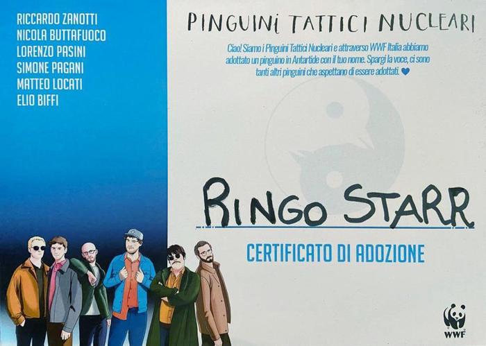 Insieme si può fare molto e i Pinguini Tattici Nucleari lo sanno: da oggi in Antartide ci sono 100 pinguini imperatore che portano i nomi di stelle della musica italiana, e che non sono più in pericolo. È proprio nella settimana in cui tutti i riflettori sono puntati sulla kermesse che il gruppo, da sempre sensibile alle tematiche ambientali, ha scelto di mettere a disposizione visibilità e attenzioni per sensibilizzare il pubblico su un tema così importante e attuale. Tramite WWF Italia i ragazzi hanno adottato 100 pinguini imperatore in Antartide per regalarli ai compagni di viaggio dell’avventura Sanremese, un gesto simbolico per contribuire a proteggere una specie ad alto rischio di estinzione. Il pinguino, creatura tenera, simpatica e un po’ imbranata è infatti l’animale-feticcio dei Pinguini Tattici Nucleari, la band che con il brano Ringo Starr, in gara al Festival di Sanremo, è da due giorni in vetta alla classifica dei brani più ascoltati su Spotify e in procinto di debuttare con uno straordinario tour nei palazzetti con il primo appuntamento sold out al Forum di Assago. I certificati di adozione, in cui ogni pinguino adottato porta il nome del suo nuovo “genitore” sono stati consegnati agli artisti in gara, generando momenti indimenticabili di stupore e meraviglia. Oggi, in Antartide si contano solamente poco meno di 50 colonie di pinguini imperatore, composte da circa 270-350.000 individui. Alcune colonie di pinguino imperatore si sono dimezzate negli ultimi 30 anni, a causa della scomparsa di circa il 60% della banchina di ghiaccio dove vivono le colonie. Con l’attuale trend di aumento della temperatura globale si teme per la sopravvivenza di questa specie nel prossimo futuro.