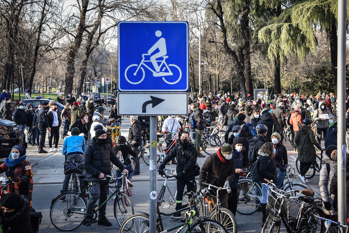 Sono circa un centinaio i lavoratori del mondo dello spettacolo e della cultura che si sono radunati davanti alla Triennale di Milano per dare vita alla prima Cultural Mass, una protesta in bicicletta toccando i luoghi principali della cultura milanese dove lasciare simbolicamente uno striscione, dalla Triennale al Teatro Strehler fino alla Scala e al Teatro degli Arcimboldi. “Vogliamo richiamare assieme i cittadini – ha raccontato Francesca Biffi del Coordinamento Spettacolo Lombardia che si è occupato dell’organizzazione dell’evento -, perché la cultura è necessaria alla gente e alla città, non solo ai lavoratori”. “Il distanziamento fisico non significa repressione della socialità e questa ne è la dimostrazione: siamo in tanti e in bicicletta, siamo aggregazione ma non assembramento” dice un manifestante. “C’è un immobilismo sociale grave – ha continuato Francesca Biffi -. Noi chiediamo attenzione. I luoghi della cultura non possono continuare a rimanere chiusi, bisogna parlare di ripartenza”. Capire quando e come si riaprirà: questo chiedono i lavoratori del mondo della cultura. Tra musica dal vivo, balli e applausi un membro del Coordinamento ha ricordato come non vi siano aiuti adeguati per questo settore. “La Lombardia ha dato reddito e sostegno solo alle partite Iva, non ai lavoratori dipendenti, mentre in altre Regioni è stato fatto” ha affermato una manifestante. Una protesta che abbraccia virtualmente anche il mondo della scuola: “Siamo vicini agli studenti che stanno manifestando per il loro diritto allo studio. Si parla sempre di cultura e ci sentiamo uniti in una causa comune” ha raccontato uno dei presenti. Fuori dalla Triennale un cartello riassume i punti ideologici della manifestazione: assunzione diretta, reddito di continuità e sicurezza sul lavoro, per una vera e propria “riforma radicale dell’intero settore.”