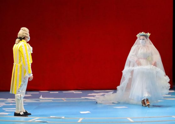 È quello che non ti aspetti e quello che ci vuole. Il Barbiere di Siviglia di Gioachino Rossini arriva a colorare le nostre giornate grazie alla Fondazione I Teatri di Reggio Emilia che ne ha allestito una rappresentazione che è di per sé una spallata al Covid per la positività che trasmette. Arriverà nelle nostre case in streaming ma sarà come essere in platea o su un palco, perché i protagonisti sono così vivi e vividi che uno schermo non può ingabbiarli. Tra i “costruttori” di questa opera ci sono il regista Fabio Cherstich e Arthur Arbesser che ha realizzato i costumi. Fabio Cherstich, diplomato a Milano alla Scuola Paolo Grassi, racconta di sentirsi “molto fortunato a fare questo lavoro, operiamo in teatro in situazioni di distanza, con le mascherine indossate da tutti gli artisti. I figuranti hanno i guanti oltre le mascherine. È un momento storico al quale bisogna adattarsi. Ma stimola anche la creatività, io ho sfruttato il fatto che non possono toccarsi per lavorare su altre dinamiche. C’è la tensione dei corpi. La limitazione è tornata a mio favore per mia scelta. Bartolo quando punisce Rosina non potendo toccarla ha una protesi collegata a un bastone e questo stratagemma ha reso l’aria divertente: lui vorrebbe una relazione ed è quasi più morboso con l’arto finto. Personalmente ho già fatto il Barbiere rappresentato su camion per più di 70 volte, questa è la prima volta sul palcoscenico. Puoi dunque comprendere quanto sono affezionato a questa opera. La musica di Rossini è una follia organizzata: Figaro è un torero scoppiettante che porta energia, questo self made man è portatore di una bella scossa; è libero perché è il regista della situazione e quando il Covid lo frena sono i figuranti ad agire per lui; pensiamo alla scena della barba di Bartolo: all’epoca i barbieri facevano anche i salassi e dunque non vedrete la schiuma ma subirà un salasso in una vasca diventando quasi Marat, con un richiamo netto alla rivoluzione francese. Abbiamo semplificato i recitativi, mi sono rifatto all’edizione do Alberto Zedda che è la più tagliata, d’altra parte l’impossibilità di toccarsi troppo dolorosa. Spero che il pubblico capisca il momento storico e fruisca con leggerezza del nostro lavoro. Appena sarà possibile leveremo le mascherine ma le distanze resteranno, solo l’abbraccio tra Rosina e il Conte sarà ammmesso”. Aspettando questo abbraccio Cherstich ragiona su altri progetti di opera e di prosa. Arthur Arbesser, astro nascente della moda internazionale prestato al teatro, anticipa i costumi: “Figaro è il nostro protagonista, sicuro e sfacciato, un torero dall’acconciatura rock’n’roll, che indossa un completo verde acido con decori in oro e calzini fucsia; Rosina, come a sottolineare il suo nome, ha un abito da scolaretta rosso e rosa; il Conte, con il suo frac a righe giallo limone si destreggia bene nei suoi travestimenti. Il coro è una massa di colore ben visibile, una banda/truppa di soldati in fucsia acceso. Con Fabio Cherstich ho già collaborato, abbiamo fatto installazioni legata alla moda e ci siamo sempre molto divertiti. Lui sa che amo la lirica, che ho già fatto cose per il balletto e per l’Opera di Berlino. Ci capiamo molto bene, amiamo Giorgio De Chirico e puntiamo su un uso forte del colore, delle righe. Abbiamo parlato a lungo di questa opera che è così gioiosa, buffa, divertente e, nel senso buono, leggera: è ideale per questo momento, riempie di gioia. Sottolineo tutto questo con i colori restando però fedele alla storia. Più faccio questo lavoro e più mi sento costumista che stilista. Cerco di raccontare le storie con una collezione. Fare i costumi non mi allontana molto dal metodo di pensare della moda. Qui il bello è che non c’è l’aspetto commerciale, bisogna creare magia e qualcosa che rimanga: sono atipico perché penso in primis a quello che può piacere a me, non diventerai mai veramente ricco ma segui. Quello che è certo che questi due miei mondi si avvicinano sempre più. Se mi dicessero di salire sul palco vorrei essere il conte d’Almaviva: romantico, bello, ha arie bellissime e finisce in rovina”. Contemporaneamente al Barbiere di Siviglia per i Teatri di Reggio Emilia Arbesser sta lavorando a un balletto contemporaneo per l’Opera di Monaco di Baviera che debutterà il 17 aprile e Balletto per Vienna a inizio 2022. Per altro Vienna è la sua città natale: “Prima del Covid ero nomade ma dopo un anno a casa ora so sempre dove è il comodino. Sono legato all’Italia, ci vivo da 15 anni. A Reggio sono stato spesso per il Festival della Fotografia, mi sento accolto. È vero sono viennese di nascita ma non vorrei viverci: Vienna di base ha lingua cattiva, quando giochi in casa ti senti maggiormente giudicato ma lì ho la famiglia e tanti amici e poi l’Opera di Vienna è un luogo fantastico!”. Accarezzato per poco tempo il sogno di debuttare con il pubblico in presenza in un Teatro Municipale Valli finalmente riaperto, la coproduzione dell’opera firmata Fondazione I Teatri di Reggio Emilia e Fondazione Teatro Comunale di Modena, sta proseguendo in pieno lockdown tra distanziamenti, sanificazioni e frequenti tamponi. Debutterà su operastreaming.com, il portale dell’opera italiana, che porta nel mondo le produzioni liriche dell’Emilia Romagna grazie alla collaborazione con EDUNOVA-Università di Modena e Reggio Emilia. E se non potrà avere, per il momento, il fondamentale pubblico in presenza, si proporrà ad una platea virtuale larghissima e numerosissima, di decine di migliaia di amanti dell’opera sparsi in tutti i continenti. “Abbiamo voluto a tutti i costi portare avanti la nostra produzione lirica annuale – spiega il direttore della Fondazione I Teatri, Paolo Cantù – un impegno, un dovere nei confronti degli artisti, dei tecnici, del pubblico e per ribadire la centralità della cultura, dello spettacolo dal vivo. Speravamo di poter riaprire finalment