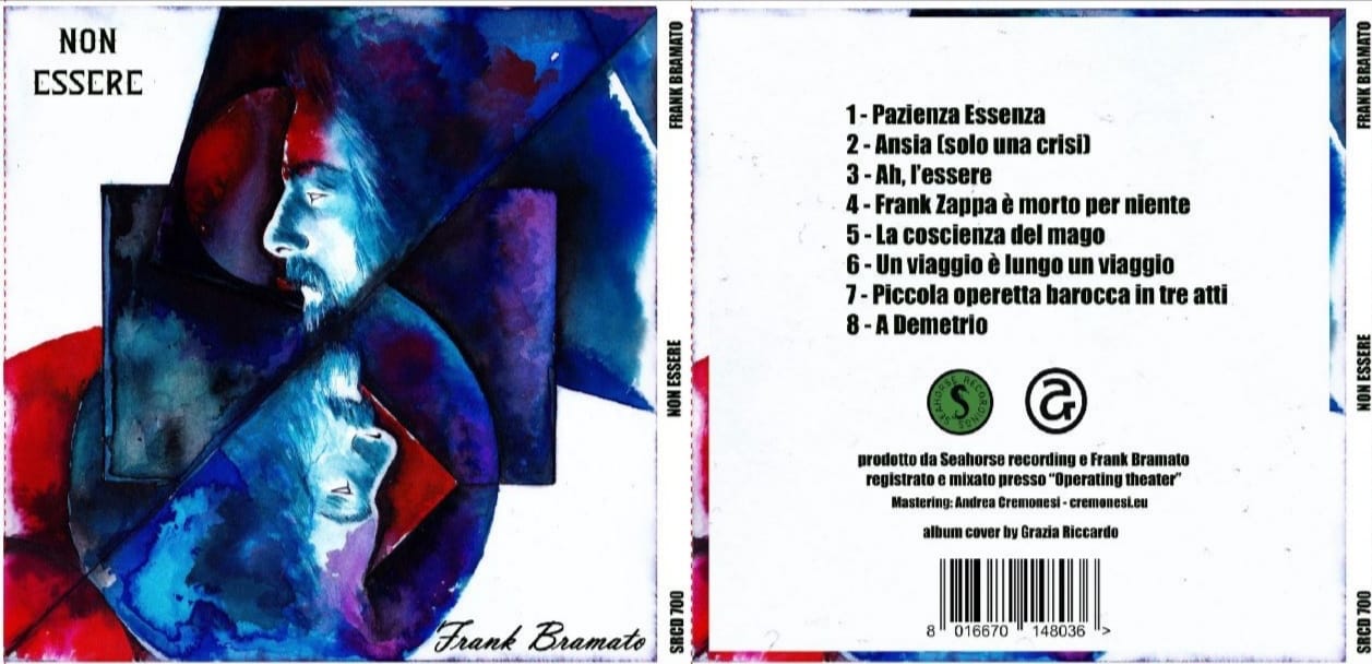 “Non essere” è il disco d’esordio di Frank Bramato, artista originario salentino decisamente fuori dagli schemi e di difficile collocazione. Nonostante si tratti di un debut, l’album è il frutto di numerose esperienze musicali ed artistiche che l’autore ha accumulato nel corso del tempo e che ha cercato di racchiudere in questo lavoro pubblicato – martedì 20 aprile 2021 – su tutti gli store digitali da Seahorse Recordings. Differenti atmosfere e suoni caratterizzano infatti tutte le otto tracce del disco, a partire dall’apertura con “Pazienza Essenza” (quasi un monologo teatrale), passando ad atmosfere più pop con il singolo di lancio “Ansia (solo una crisi)” fino alle tracce più estreme come la quasi prog “Piccola operetta barocca in tre atti” o le incursioni etniche e le sperimentazioni vocali di “A Demetrio”. La volontà dell’autore infatti è proprio quella di uscire da qualsiasi schema imposto, cercando di rispettare il flusso della musica, senza metriche, e senza seguire per forza schemi, canoni e tempistiche proprie di una società (e di un modo di fare musica) che si avvia sempre più verso la totale omologazione. I testi hanno concetti apparentemente diversi, ma ascoltati attentamente ritornano sempre sul concetto (antico) di “essere e non essere”. Come un messaggio, rivolto in primis a sé stesso, che ripete ossessivamente quasi come un mantra: “piuttosto che diventare uguale meglio non essere”. Tutti i brani sono stati registrati nello studio personale dell’autore costruito intorno alle proprie esigenze fatte di un mix di suoni analogici e digitali.