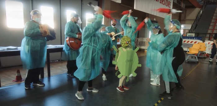 Si chiama “La danza del vaccino” ed è una “tammuriata” scritta e musicata da Pino Piazzolla, leader della omonima “Banda”, per richiamare l’attenzione sull’importanza di una partecipazione ampia alla campagna vaccinale contro il Covid 19. Musica popolare e ispirata ai ritmi partenopei, ma in dialetto abruzzese, quella che la Banda Piazzolla ha messo in cantiere per contribuire a sensibilizzare l’opinione pubblica sull’opportunità offerta dal vaccino, e lo ha fatto con un pezzo dalla struttura armonica fedele al proprio genere, un folk-pop orecchiabile e coinvolgente con tammorre e organetti. E per lanciare il brano il gruppo ha realizzato una clip con le immagini girate al Pala Bcc, il grande centro vaccinale di Vasto, dinanzi alle persone in attesa di ricevere la dose di vaccino. Vestiti da infermieri e con mega siringhe, un testo tipo ‘contro il virus assassino ci facimme lu vaccine’, oppure ‘non aver paura è soltanto una piccola puntura’. Un invito ”in musica”, dunque, a partecipare alla campagna di vaccinazione.