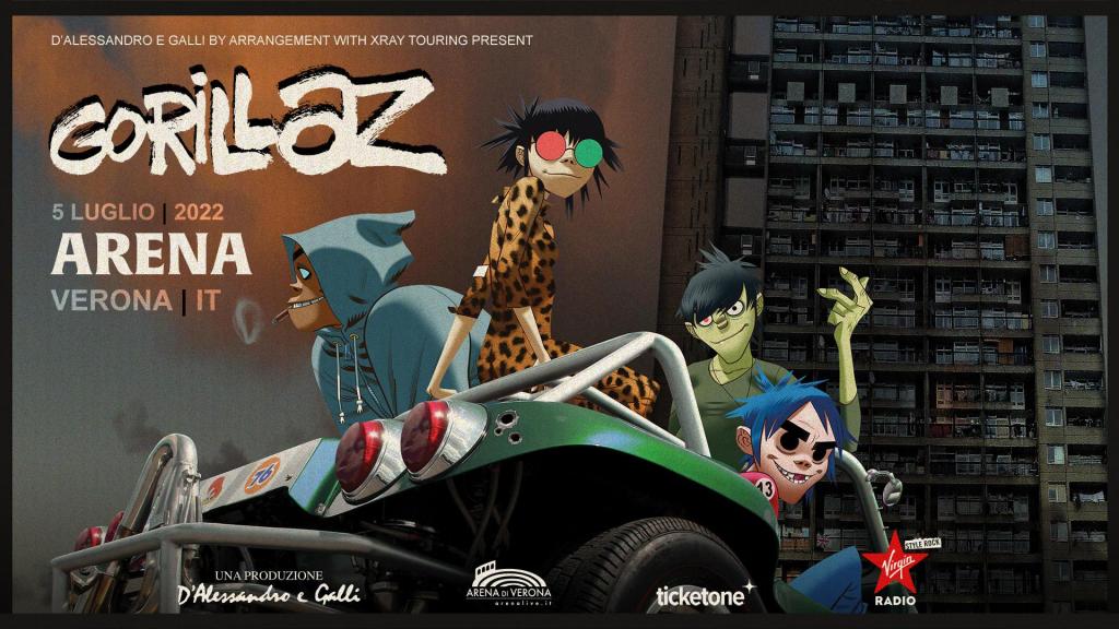 Dopo due anni di magra, l’estate 2022 sarà piena di grandi concerti. L’ultimo ad essere stato annunciato è quello dei Gorillaz di Damon Albarn che martedì 5 luglio 2022 si esibiranno all’Arena di Verona nella loro unica data italiana. I biglietti saranno messi in vendita su www.dalessandroegalli.com a partire dalle 10:00 del 5 luglio, pre-sale sul sito di Virgin Radio dalle 10:00 del 2 luglio. L’ultimo album dei Gorillaz è Song Machine: Season One – Strange Timez. Il concerto è annunciato come una sorta di riassunto della carriera della band, che nel 2021 festeggia i vent’anni di attività. In un’intervista al NME, Damon Albarn ha parlato dei suoi vari progetti. Il 12 novembre pubblicherà il secondo album solista The Nearer The Fountain, More Pure The Stream Flows e sta lavorando «a musica a tema carnevalesco con i Gorillaz e un sacco di gente di West London, è un ritorno allo spirito del primo disco». In quanto ai Blur, «di recente ci siamo fatti una chiacchierata, ma non siamo andati oltre. Un’idea però ce l’abbiamo. Ultimamente sono stato un po’ impegnato, ma quando ci sarà la volontà di farlo, io ci sarò. Non voglio imporre niente a nessuno».