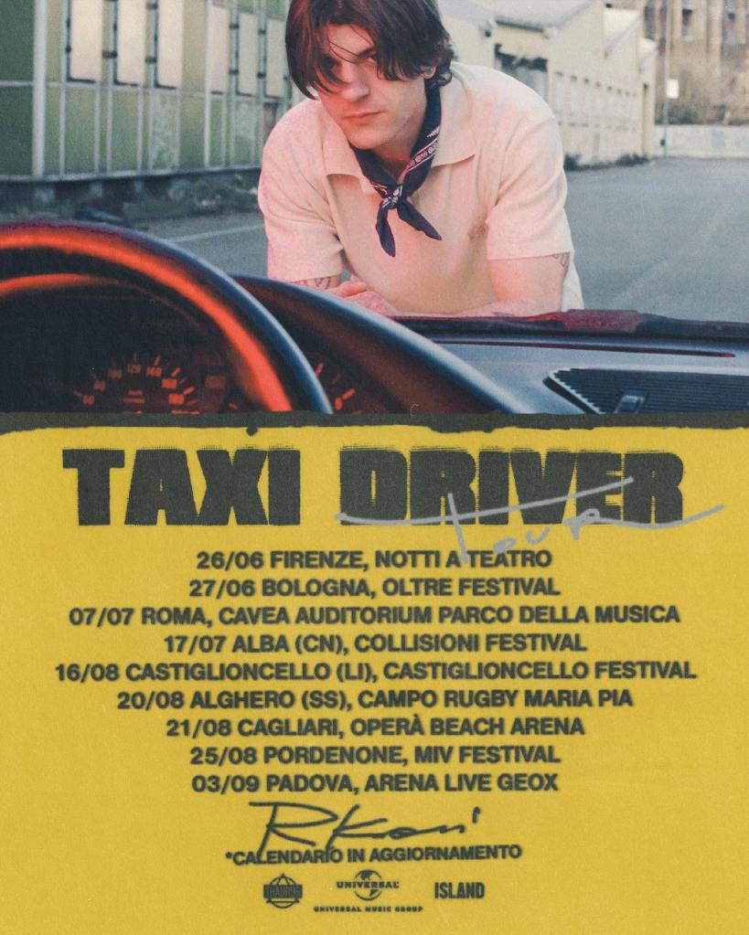 Rkomi, pseudonimo di Mirko Manuele Martorana, è tornato finalmente live con il suo “Taxi Driver Summer Tour 2021”. Dodici appuntamenti tra giugno e settembre, con un calendario in continuo aggiornamento, durante il quale il rapper milanese presenta per la prima volta live tutti i brani del suo ultimo disco “Taxi Driver”, uscito lo scorso 29 aprile, e i successi che in questi anni lo hanno reso un punto fermo nel mondo dell’hip hop italiano. Rkomi è atteso sui palchi dei più importanti festival nostrani insieme a tutti quegli artisti che hanno collaborato con lui all’ultimo lavoro in studio, da Tommaso Paradiso a Dardust, passando per Gazzelle, Irama, Gaia, Sfera Ebbasta e molti altri. Forte dell’incredibile successo ottenuto con il suo ultimo album “Taxi Driver”, Rkomi ha deciso di ringraziare i fan con una serie di appuntamenti live da giugno a settembre. Un grande segnale per il pubblico e per i lavoratori, che riporta finalmente all’attivo tutte le maestranze dello spettacolo, da troppo tempo ferme a causa della pandemia. Rkomi si esibirà con il suo “Taxi Driver Summer Tour 2021” per dodici serate sui palchi dei più importanti festival italiani dedicati alla bella stagione. I fan hanno finalmente iniziato ad ascoltarlo dal vivo sabato 26 giugno 2021. Il tour, per ora, dovrebbe concludersi il 3 settembre 2021 con un grande concerto all’Arena Live Geox di Padova.