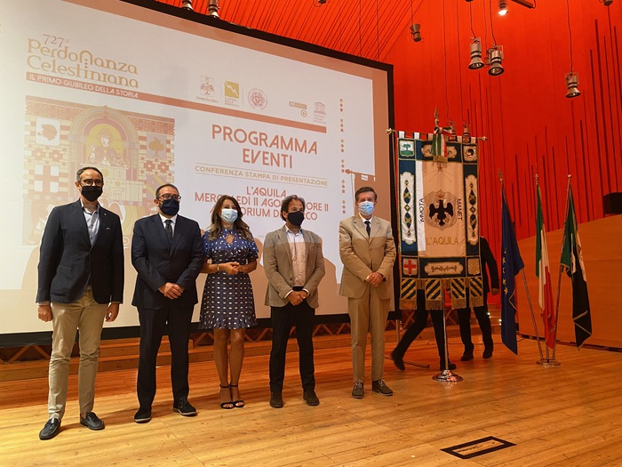 Con il ritorno all’Aquila di Riccardo Cocciante e, guest star, Renato Zero, la 727ª edizione della Perdonanza Celestiniana potrà contare sulla mediapartnership Rai, con Rai Cultura e Rai Radio. Il programma, dal 23 al 30 agosto, è stato presentato all’Auditorium del Parco dal sindaco Pierluigi Biondi e dal direttore artistico Leonardo De Amicis, con i componenti del Comitato Perdonanza. In apertura il ricordo di Giovanna Di Matteo, curatrice del Corteo Storico, venuta a mancare nell’aprile scorso. La Perdonanza “avrà il claim ‘ogni volta rinasce L’Aquila’ – ha detto Biondi – Un programma costruito per L’Aquila con artisti importantissimi e riconoscimento della Rai del valore dell’evento”. Quest’anno il tema è la formazione. Le figure principali del corteo sono tre persone legate al mondo dell’istruzione. L’evento della prima serata, con l’accensione del braciere con il fuoco del Perdono, il 23 agosto, ideato da De Amicis e scritto con Paolo Logli, ha per titolo “Un canto per la rinascita, di viaggio di cuore”. A presentare sarà Lorena Bianchetti. “Una Perdonanza super evoluta – ha detto De Amicis – Ho intitolato l’apertura ‘di viaggi e di cuore’, la strada è la metafora della vita e L’Aquila è abituata a rinascere”. Sul palco Roby Facchinetti, Irene Grandi, Michele Zarrillo, Simone Cristicchi e Orietta Berti, accompagnati dall’orchestra del conservatorio dell’Aquila “Casella” e dalla Schola Cantorum San Sisto, dalla Corale L’Aquila e dal coro del Conservatorio. Il 24 agosto Galà della danza presentato da Lorella Cuccarini. Il 25 agosto Gigi D’Alessio, Arisa e Clementino, il 26 agosto Max Pezzali, il 27 Franco 126. Nei giorni 28 e 29 agosto in programma la cerimonia religiosa con apertura della Porta Santa. Il gran finale del programma culturale è previsto il 30 agosto con lo spettacolo “L’Aquila ritorna: l’abbraccio alla musica e alla cultura” con Fabrizio Moro, Ermal Meta, Dulce Pontes, Monica Guerritore, Stefano Fresi, i Neri per Caso, il ritorno di Riccardo Cocciante e la straordinaria partecipazione di Renato Zero. Il corteo storico del 28 agosto anche quest’anno, come nell’edizione precedente, sarà in forma statica.