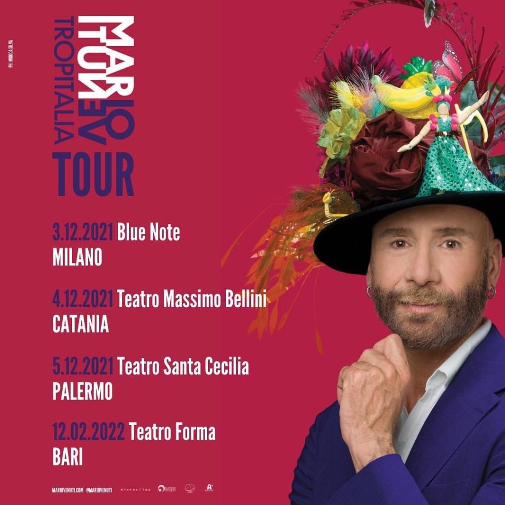 Dopo il successo della tournée musicale estiva, durante la quale Mario Venuti ha avuto l’occasione di un incontro diretto con il suo pubblico – accompagnato sul palco dai colleghi e amici Tony Canto, Vincenzo Virgillito, Neilton Dos Santos e Manola Micalizzi – il cantautore e musicista italiano ha annunciato ai propri fan per mezzo stampa e social l’arrivo di un tour invernale, nei teatri più belli della Penisola. Si chiamerà “Tropitalia Tour” e sarà l’opportunità per tutti i presenti di tornare a cantare e ballare insieme, in una versione inedita dei più famosi brani di repertorio di Venuti che, come lui stesso racconta, saranno rivisitati in chiave “tropicalista”. È stato lo stesso Mario Venuti a raccontare ai fan sui social l’intenzione del suo nuovo progetto “Tropitalia Tour” che permetterà alla sua musica di farsi sentire nei teatri e jazz club più belli d’Italia. Un lungo messaggio accompagnato da una cover che immortala l’artista in primo piano, in una mise tropicale, elegante e ricca di colori, che richiama appieno il concept dell’evento e del disco “Tropitalia” rilasciato lo scorso 7 settembre.“Questa estate ho avuto il privilegio di incontrare il mio pubblico, ritrovandoci ed emozionandoci” ha commentato Venuti, “Insieme a una band eccezionale di cui fa parte il mio produttore artistico Tony Canto alla chitarra, Vincenzo Virgillito al contrabbasso, Neilton Dos Santos alle percussioni e Manola Micalizzi alle percussioni e cori, ho riletto in chiave tropicalista le canzoni del mio repertorio e raccontato il nuovo disco, Tropitalia. Ora non vedo l’ora di tornare a suonare. Ci vediamo al tour invernale!”. Sono ben 4 le date finora in programma per il “Tropitalia Tour” di Mario Venuti, in un calendario in continuo aggiornamento. Si partirà il prossimo 3 dicembre dal capoluogo meneghino per raggiungere poi, in ordine, Catania e Palermo, e concludere con una meravigliosa festa finale il 12 febbraio a Bari.