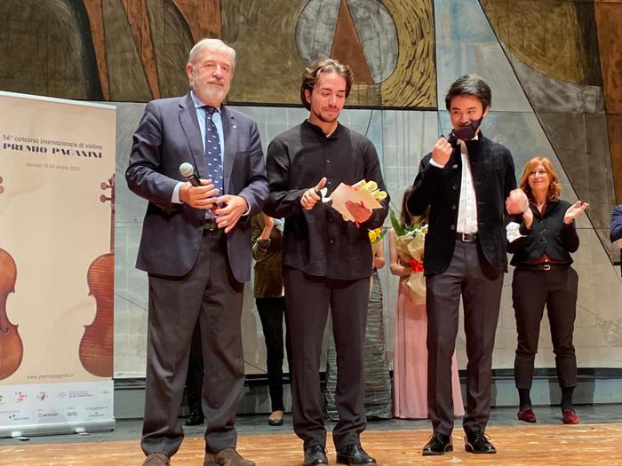 Dopo Salvatore Accardo (1958), Massimo Quarta (1991) e Giovanni Angeleri (1997), la sera del 24 ottobre, finalmente, un altro italiano ha vinto il ‘Premio Paganini’: Giuseppe Gibboni, 20 anni, proveniente da Salerno, si è imposto nella 56/ma edizione del Concorso Internazionale di violino dedicato al grande artista genovese. “In questo momento – è stato il commento a caldo del giovane violinista – è difficile dire qualcosa. Sul palco quando ho terminato Paganini e ho ricevuto una incredibile ovazione da parte del pubblico, mi è scesa una lacrima, l’emozione era davvero troppo forte. Dedico la mia vittoria a chi mi è stato vicino, alla mia famiglia che da quando a tre anni ho iniziato a studiare mi ha aiutato e alla mia fidanzata Carlotta Dalia che mi ha sostenuto in questo periodo difficile”. Tecnica straordinaria, totale padronanza dello strumento, Gibboni ha regalato un’incredibile lettura del Concerto n.1 di Paganini, ma ha evidenziato anche sensibilità interpretativa e eleganza lirica ottenendo un caloroso successo pure nella esecuzione del Concerto di Tcajkovskij. Al secondo posto si è piazzato il sudcoreano di appena 16 anni Nurie Chung, un talento che farà certamente parlare di sé e che domenica ha regalato una lettura davvero convincente del Concerto di Sibelius. Dietro a loro, terze ex aequo la svedese Ava Bahari, 24 anni, e la tedesca Lara Boschkor, 22 anni. Al Premio si erano iscritti 102 concorrenti. Di questi una commissione, visionando i video inviati aveva selezionato i 32 candidati a esibirsi in pubblico a Genova. Solo 24, però, si sono poi presentati per le difficoltà derivanti dalla pandemia. Sedici sono passati in semifinale e sei approdati alle finali di sabato e domenica ospitate al Carlo Felice con l’Orchestra del teatro diretta dal presidente della giuria Sergej Krylov.