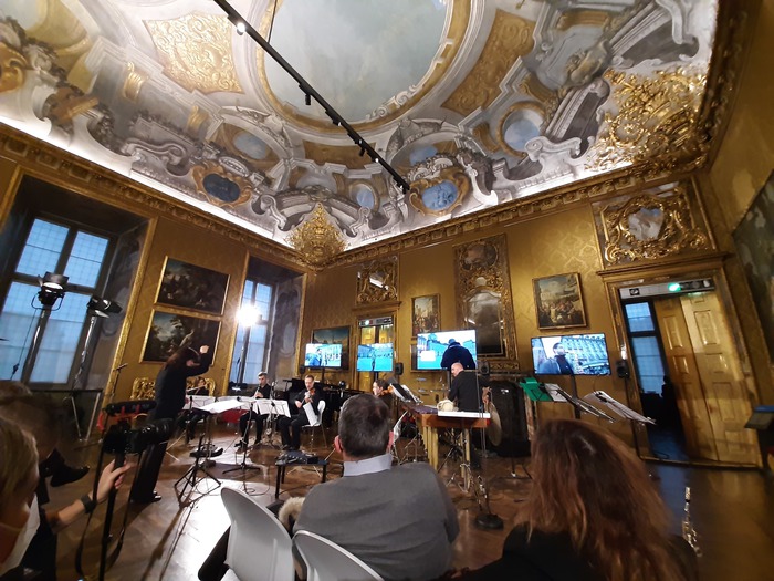 Con il concerto ‘The Garden of Forking Paths’ nel Gran Salone Ricevimenti di Palazzo Madama, inserito nel progetto europeo ‘5G-Tours’, Torino è stata teatro il 9 novembre di un esperimento mai realizzato prima, di musica suonata in contemporanea da musicisti in punti diversi dalla città grazie ad un’alta connessione 5G. Il pubblico, i 6 musicisti del Fiari Ensemble di Torino e gli attori del Teatro Stabile di Torino erano all’interno dello storico Palazzo, mentre i 4 sassofonisti del Saxemble di Zurigo suonavano camminando per le piazze del centro. “Una sincronia impossibile fino ad oggi – hanno spiegato Alessandro Pane direttore di R&D di Ericsson Italia e Daniele Franceschini, responsabile di Innovazione Tim – realizzabile invece con il 5G che permette di stare sotto la soglia dei 3 centesimi di secondo”. Alla realizzazione del concerto, scritto dal maestro Andrea Molino, hanno collaborato Rai, Fondazione Torino Musei e LiveU. “La Rai lavora da tempo sul 5G – ha detto Gino Alberico, direttore Centro Ricerche Rai – e in due direzioni, la produzione e la distribuzione del segnale. Con la pandemia abbiamo assistito a spettacoli musicali con artisti in sincrono da remoto, ma in post produzione, qui siamo in diretta”. “Per me essere qui è un sogno – ha detto l’assessora alla Cultura della Città Chiara Foglietta – in quanto io mi occupo di innovazione e cultura, due settori che qui si sposano totalmente”. Torino nel 2018 ha vinto il bando europeo 5G-Tours insieme ad Atene, dove il progetto studia la realtà smart city, e alla francese Rennes con una ricerca nel campo della cooperazione sanitaria in simultanea. Torino, invece sta sviluppando nuovi orizzonti in campo culturale-turistico che nel 2022 coinvolgeranno anche la Gam (Galleria d’arte moderna) con l’arrivo di due innovativi guide ‘robot’.