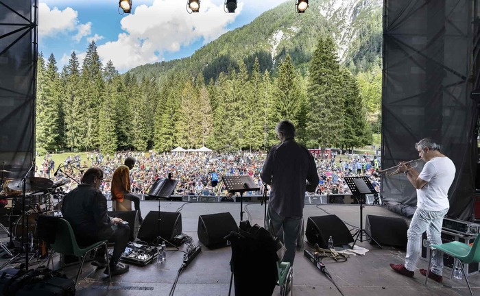 Un quartetto che non aveva mai suonato insieme, ma non è stato un problema visto il talento musicale e l’esperienza che hanno Jan Garbarek, Trilok Gurtu, Paolo Fresu e Carlo Cantini. Questi quattro “grandi maestri”, come li hanno definiti gli organizzatori, “quattro giganti della musica jazz mondiale” si sono esibiti nell’incantevole scenario della montagna friulana, sullo stesso palco, per uno speciale concerto denominato “L’Anima del Jazz”, unico nel suo genere e ideato da loro stessi. Il sassofonista Jan Garbarek, il versatile e virtuoso percussionista Trilok Gurtu, che fonde la tecnica occidentale con quella indiana, il trombettista Paolo Fresu e Carlo Cantini, eclettico musicista e mente musicale di questo evento, si sono espressi nel repertorio di ciascuno, improvvisando per la prima volta insieme. Un concerto di quasi quasi due ore ai Laghi di Fusine, nell’ambito del 27° No Borders Music Festival. Appuntamento che ha richiamato migliaia gli appassionati di jazz giunti in alto ai laghi a piedi o in bicicletta. Il No Borders Music Festival è organizzato dal Consorzio di Promozione Turistica del Tarvisiano, Sella Nevea e Passo Pramollo, in collaborazione con, tra gli altri, Regione Fvg, PromoTurismoFVG, Allianz Assicurazioni.