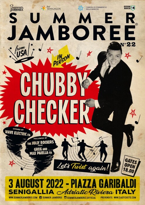 In duemila per il concerto di Chubby Checker, il padre del twist. L’artista si è esibito ieri a Senigallia (Ancona) dove è in corso il Summer Jamboree, il festival del rock’ n’ roll che sta raccogliendo migliaia di turisti arrivati da tutto il mondo. Numeri da capogiro per l’edizione 2022, tornata pienamente dal vivo. Chubby Checker, arrivato dagli Usa, ha fatto scatenare il pubblico con tutti i suoi più grandi successi: Let’s twist again, The Twist, Pony Time, The Fly, Slow Twistin, Dancin’ Party, Popeye the Hitchhiker, The Limbo Rock, Birdland, Twist It Up, Loddy Lo, Yo Twist e tante altre. Il suo pezzo The Twist (1959) non ha segnato per sempre solo la sua carriera, ma ha dato il via al fenomeno del “ballare spezzando il ritmo” che è, come lo stesso Chubby spiega, “come spegnere una sigaretta con i piedi e strofinare un’estremità con un asciugamano”. Continuano le sorprese sulle note del rock’n’roll: per domani 5 agosto sul palco della Rocca Roveresca si esibiranno I Belli di Waikiki con le loro note hawaiane, rockabilly e tropical sounds, seguiti dagli Hormonauts, band tra le più “wild” di quest’anno. E ancora fuoco e fiamme sul palco centrale in piazza Garibaldi, con i concerti di Joe Bastianich e La Terza Classe, ed Abby Girl accompagnata dai The Good Fellas.