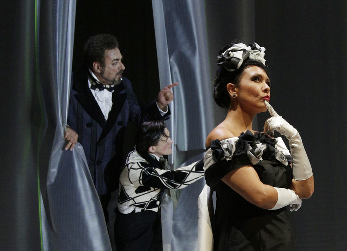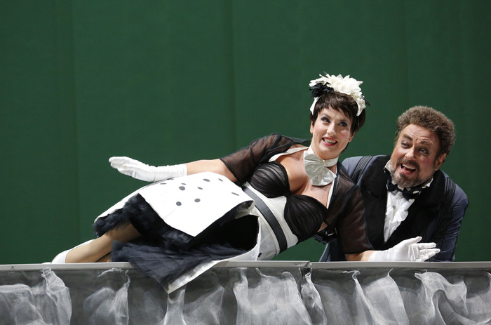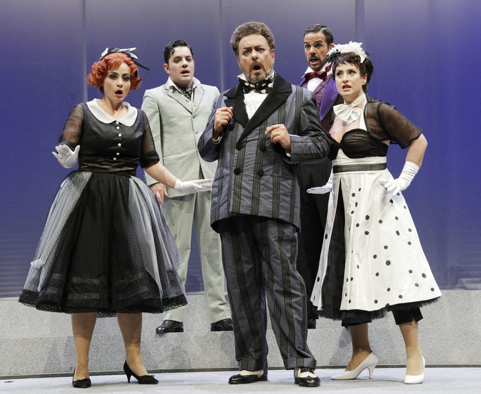 Applausi calorosi, andati ai cantanti anche a scena aperta, ed equamente distribuiti dal pubblico al termine della recita tra il maestro Carlo Rizzi, sul podio dell’Orchestra Sinfonica Rossini, e il team autore della parte visiva dello spettacolo, guidato dal regista Marco Carniti, tutti richiamati più volte sul palco tra le ovazioni, hanno accolto ieri sera a Pesaro la riproposizione de’ La Gazzetta, seconda opera in cartellone del 43° Rossini Opera Festival. Già allestita con successo al Rof nel 2015, l’opera buffa in due atti fu rappresentata a Napoli da Rossini nel settembre del 1816 dopo il disastro romano del Barbiere di Siviglia e tre mesi prima dell’Otello, probabilmente per ‘fare cassa’, utilizzando più che mai autoimprestiti, provenienti dal Turco in Italia, dalla Pietra del paragone, da L’Equivoco stravagante e dalla Cambiale di matrimonio. Un’opera minore e un po’ pasticciata dove Rossini, da quel genio che era, seppe però imprimere il suo marchio soprattutto nell’ouverture, poi trasferita nella Cenerentola, e nello strepitoso Quintetto ‘ritrovato’, con echi del Barbiere di Siviglia, inserito nell’edizione critica del 2015. Il libretto di Giuseppe Palomba si basa su ‘Il matrimonio per concorso’ di Goldoni, principe indiscusso della commedia settecentesca, che tratteggia storie esilaranti di amori contrastati, travestimenti ed equivoci senza indulgere nell’approfondimento psicologico, ma trattando i personaggi come maschere, portatrici ciascuna di uno stereotipo comportamentale. Di qui la scelta di Carniti di ambientare La Gazzetta negli anni ’50 a Parigi, massimo centro culturale dell’epoca, dove all’Hotel Aquila si affollano una ridda di personaggi-tipo provenienti da tutto il mondo, a far da cornice all’amore di Lisetta per il locandiere Filippo, osteggiato dal padre di lei Don Pomponio (il classico buffo napoletano) che vorrebbe per la figlia un miglior partito e per trovarlo pubblica un annuncio sul giornale. Ma Lisetta, come Mirandolina nella Locandiera, sceglie un compagno socialmente inferiore, postulando il concetto di una libertà femminile, che nella versione attuale – per il regista “più aderente all’oggi rispetto a quella del 2015” – si estende anche all’amore per una persona dell’altro sesso, accennato da una bandierina arcobaleno LGBT. Il tutto con una regia astratta e raffinata dove pochi oggetti: scale, sedie, banconi, pannelli che scendono dall’alto o lettere portate a mano dai figuranti, nelle scene di Manuela Gasperoni, vanno ad indicare le diverse fasi e temperature emotive della vicenda, in una perfetta fusione tra teatro e musica. I cantanti-attori sempre in movimento sulla scena, e abbigliati con gli splendidi costumi di Maria Filippi, si esprimono liberamente in quello che si risolve alla fine in un esilarante duello tra maschi e femmine, con la vittoria piena di queste ultime e un omaggio finale al Rof, con un gioco di lettere di plastica che vanno a comporre Rossini Opera Festival. Nel cast, tutto perfettamente in parte, Carlo Lepore, un Pomponio apprezzatissimo dal pubblico, come pure Maria Grazia Schiavo (Lisetta), Giorgio Caoduro (Filippo), Martiniana Antoine, Alejandro Balinas, e ancora Pietro Adaìni, Andrea Nino, Pablo Galvez ed Ernesto Lama. Coro del Teatro della Fortuna preparato da Mirca Rosciani. Repliche il 13, 15 e 18 agosto.