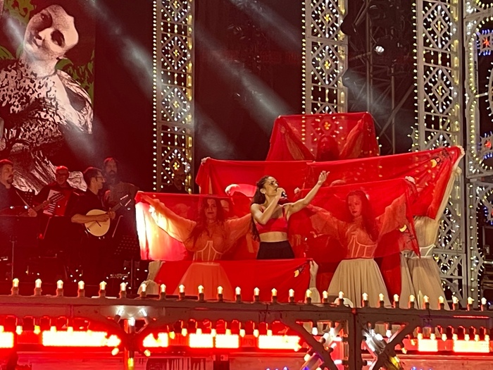 Una esplosione di ritmo e colori, con i tamburelli protagonisti assoluti e i big della musica pop italiana, Elodie, Marco Mengoni, Samuele Bersani, scatenati sul palco della Notte della Taranta. Il piazzale dell’ex convento degli Agostiniani di Melpignano (Lecce) torna a saltare a ritmo di pizzica con 50 mila persone che già ieri sera hanno assistito alle prove generali del Concertone, in programma oggi dalle 22:30, con l’attesa esibizione – ieri assente alle prove – della star internazionale Stromae. Elodie, che inizia la sua esibizione tra il pubblico, canta e balla una appassionata “Pizzica di San Vito” e poi incanta con la sua Tribale. Mengoni canta in griko “Klama”, lasciandosi andare ad emozionanti virtuosismi che alla fine dell’esibizione gli fanno dire “sto tremando”. Ma è il maestro concertatore Dardust a tenere il palco per tre ore, dirigendo l’orchestra, suonando il pianoforte e muovendosi tra le esibizioni battendo sul tamburo. A fare da sfondo al grande show è l’innovativo spettacolo visual, grande novità di questa 25ª edizione, incorniciato dai 38 mila led delle tradizionali luminarie. Scorrono sugli schermi figure dell’immaginario popolare, tra scene bucoliche, figure sacre, richiami alla vita dei campi e dell’arte, soli, spighe di grano, grappoli d’uva. Lo show, che sarà aperto da giovani Taranters e dagli Après la Classe, inizia con l’assolo di quattro tamburelli mentre le luci si accendono lentamente, fino all’esplosione di colori. Narratrice d’eccezione Madame. Come annunciato da Dardust, è un percorso di contaminazioni e tributi, tra passato e futuro, con i costumi tipici della tradizione salentina e incursioni di drag queen, a ritmo di Taranta alternata alle note dei Cure, di David Bowie, dei Chemical Brothers.