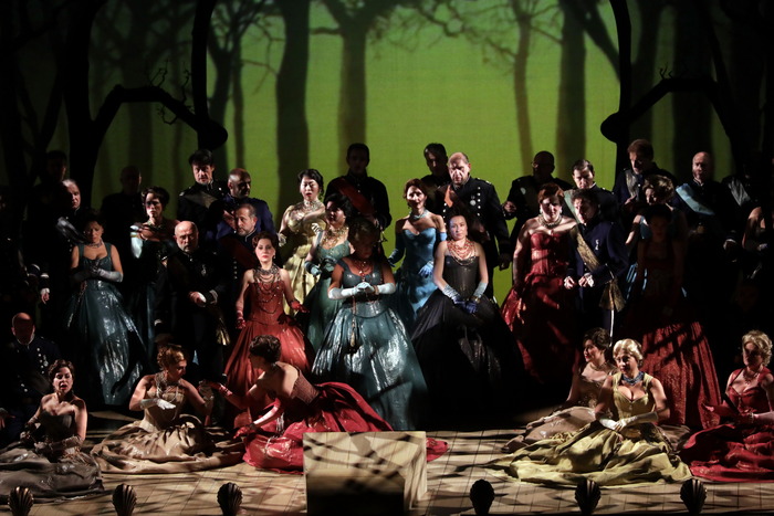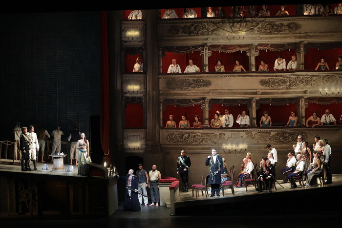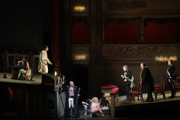 Una tempesta perfetta, in cui la musica ‘racconta’ gli stati d’animo dei protagonisti della storia e accompagna gli eventi, con una varietà di accenti, tempi e sfumature, in sintonia perfetta con il libretto e con un allestimento steel punk che contribuisce a creare un mondo magico: The Tempest di Thomas Adés è arrivato per la prima volta alla Scala di Milano, cioè nella sua casa naturale. La vicenda narrata nell’opera di Shakespeare, rivista nel libretto di Meredith Oakes, è infatti quella di Prospero, duca di Milano abbandonato su una barca insieme alla figlia Miranda, dal fratello Antonio con la complicità del re di Napoli. E il regista Ropert Lepage (che ha pensato per il Met di New York nel 2012 l’allestimento qui ripreso da Gregory Fortner) ha deciso di ambientarlo, almeno in parte, alla Scala con i suoi palchi, e le sue sedie rosse, arricchendolo però di tatuaggi, acrobati, macchine volanti, candelabri scintillanti che diventano trapezi. Sul podio lo stesso compositore ha guidato l’orchestra scaligera attraverso una partitura piena di ostacoli e insidie. Anzi di acrobazie, come quelle compiute in scena da Ariel (una straordinaria Audrey Luna), lo spirito dell’aria che canta sospesa a metri d’altezza su travi, o imbracata in una struttura che ricorda un ragno, canta frasi che, nella loro acutezza e arditezza, diventano anche suoni onomatopeici. Con lei, in scena il suo padrone, Prospero (Leigh Melrose), diventato grazie alla magia padrone di un’isola in cui fa naufragare la nave che trasporta il fratello Antonio (Robert Murrey), il re di Napoli (Toby Spence) e Gonzalo (Sorin Coliban). Durante la tempesta si separa da loro il principe Ferdinand (Josh Lovell) che sull’isola incontra Miranda (Isabel Leonard). Fra Ferdinand e Miranda, che Calibano (Frédéric Antoun), figlio della strega che prima possedeva l’isola vorrebbe invece per sé, nasce l’amore. Una forza, ammette Prospero, su di cui lui non ha potere. Ed è ciò che lo fa rinunciare alla vendetta e porta al perdono. A questo punto a Prospero non servono più i poteri magici, Ariel è lasciato libero e sull’isola resta Caliban. Solo.