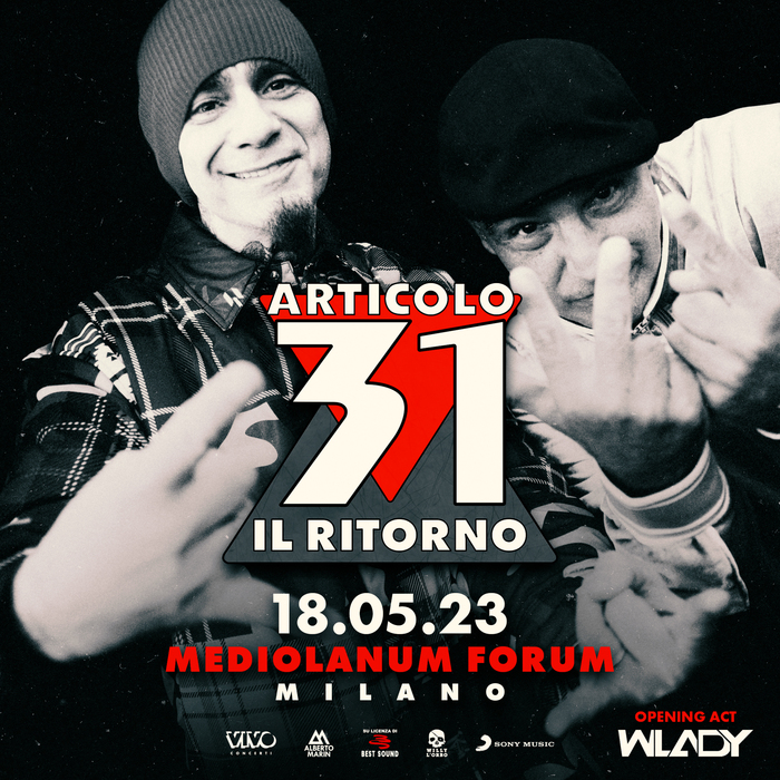 Dopo aver annunciato la loro partecipazione alla 73ª edizione del Festival di Sanremo 2023 con il brano “Un bel viaggio”, gli Articolo 31 tornano insieme anche dal vivo con una data, organizzata e prodotta da Vivo Concerti, giovedì 18 maggio 2023 al Mediolanum Forum di Assago. I biglietti saranno in vendita su vivoconcerti.com dalle 16 di martedì 20 dicembre 2022, e in tutti i punti vendita autorizzati dalle 11 di sabato 24 dicembre. Considerati uno dei gruppi più influenti della scena hip hop nostrana, gli Articolo 31 si sono fatti conoscere con l’album “Strade di Città”, per poi arrivare al grande pubblico con “Messa di Vespiri” e album sempre più pop come “Cosi Com’è”, “Nessuno” e “Perché Si”. Dopo “Domani Smetto” del 2002, “Italiano Medio” del 2003, nonché l’album live “La Riconquista del Forum” del 2004, sono tornati in scena nel 2018 con 10 date evento al Fabrique e con un tour estivo nel 2019 per festeggiare i 25 anni di carriera e ora di nuovo per il festival di Sanremo.