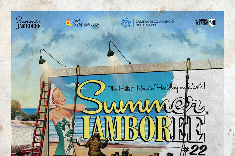 Abbracci veri, balli condivisi, grande musica e sorrisi” è lo slogan scelto per l’edizione 2022 (la XXII) del Summer Jamboree, festival della Musica e Cultura Usa degli anni ’40 e ’50, che torna completamente live dal 30 luglio al 7 agosto a Senigallia (Ancona): artisti internazionali e grandi concerti ad ingresso gratuito, balli swing e rock’n’roll, burlesque show, tatuaggi tradizionali in stile vintage, dance camp e dance show con i migliori ballerini della scena mondiale, il Rockin’ Village Vintage Market e l’Hawaiian Party in riva al mare (3 agosto), oltre ad una sfilata da auto d’epoca. Dopo un anno saltato a causa della pandemia, il 2020, e uno all’insegna delle limitazioni, torna la “Hottest rockin’ holiday on Earth”, una kermesse che attira un pubblico di appassionati e cultori di musica e cultura vintage da tutto il mondo, un ‘popolo’ che partecipa con abiti (spesso acquistati in loco al Rockin’ Village Market) e acconciature in stile: t-shirt e accessori ispirati agli anni ’40 e ’50, scarpe, cappelli, camicie, hawaiane, costumi da bagno, occhiali, ma anche strumenti musicali, vinili e oggettistica, poster e cartoline vintage, targhe, gadget e cimeli. Il festival si aprirà in anticipo il 30 giugno, con la prestigiosa mostra fotografica “Icons” di Elliot Erwitt, allestita nelle sale al primo piano di Palazzetto Baviera fino al 16 settembre. La mostra a cura di Biba Giacchetti è organizzata dal Summer Jamboree in collaborazione con SudEst57. Oltre settanta gli scatti in esposizione, tra i più celebri di Elliott Erwitt, che raccontano uno spaccato della storia e del costume del Novecento visto attraverso lo sguardo tipicamente ironico di quello che è considerato uno dei più grandi maestri della fotografia mondiale di tutti i tempi. Una delle sue delle foto più iconiche intitolata “California kiss” è stata scelta per presentare la XXII edizione del Summer Jamboree.