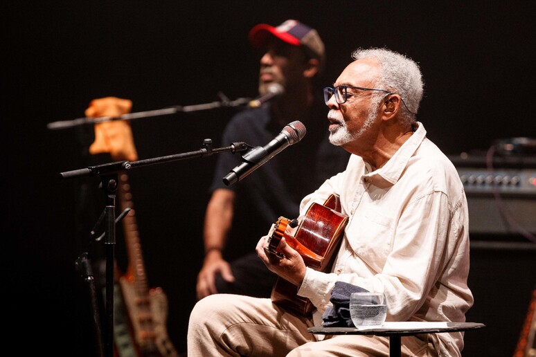 Emozioni, ritmo e classe senza tempo con tutto il pubblico dell’Auditorium Parco della Musica a ballare e a cantare in coro con lui i successi di una carriera straordinaria intrecciata con la storia del suo Paese. È finita come una grande festa la trionfale serata romana di Gilberto Gil del tour ”Aquele Abraco”, annunciato come la probabile ultima avventura europea di uno pilastri della musica brasiliana. A rendere speciale l’atmosfera ha contribuito la presenza massiccia di connazionali tra gli spettatori che lo hanno acclamato senza sosta, fino al tripudio dei bis con il brano che dà il titolo al tour e Toda Menina Baiana. Più di 60 album e nove Grammy Awards, ambasciatore per la pace Unesco e Legion d’Onore in Francia, Gil non dimostra i suoi 81 anni, impeccabile alla chitarra nella prima parte più intima riservata alla samba, tra jazz, reggae e bossa nova in cui spiccano le pietre miliari di Garota de Ipanema e Moon River affidate alla voce della nipote Flor. Nel racconto musicale raffinato di oltre un’ora e mezza l’artista ricorda gli snodi della sua vicenda personale, le tre canzoni scritte dopo l’arresto e la detenzione durante la dittatura militare – stessa sorte toccata a Caetano Veloso, l’altro padre del Tropicalismo che proprio una decina di giorni fa si è esibito nella Cavea dell’Auditorium – e ‘Back in Bahia’, composta dopo il ritorno in patria dall’esilio a Londra. ‘No woman no cry’ è l’omaggio a Bob Marley con cui ha collaborato e ‘Touche pas’ scritta in francese per il movimento Sos Racism. ”Bravo ministro”, gli urla uno spettatore ricordando la sua esperienza alla Cultura nel governo Lula. Il ritmo sale, Gil e i tre giovani musicisti della band puntano verso il finale. ”Voglio sentire tutti cantare” incita il cantante e il pubblico risponde lasciando le poltrone per circondarlo sotto il palco e cominciare a ballare. Tra i brani travolgenti del bis spiccano i versi in italiano di A Novidade, ”quanta disparità, il mondo diviso in due metà, da un lato carnevale, dall’altro fame totale”. Tutti in piedi emozionati ad applaudire a braccia alzate il maestro. ”Muito obrigado, grazie Roma”.