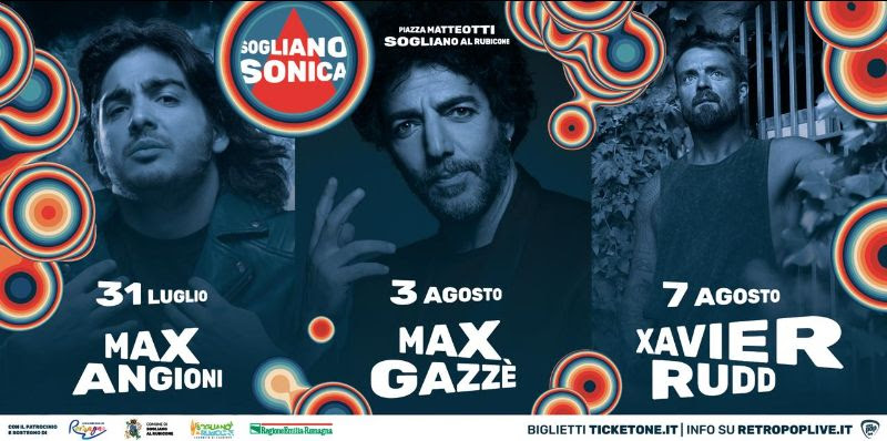 Definito il programma di Sogliano Sonica, la rassegna estiva di Sogliano al Rubicone (FC) giunta alla sua terza edizione e ideata e organizzata dall’associazione culturale RetroPop Live aps. Il comico e personaggio televisivo Max Angioni e i cantautori Max Gazzè e Xavier Rudd saranno i protagonisti sul palco della splendida cornice di piazza Matteotti, rispettivamente mercoledì 31 luglio, sabato 3 e mercoledì 7 agosto. Toccherà quindi a Max Angioni inaugurare la rassegna, un artista che torna così in Romagna per presentare lo spettacolo “Anche meno“. Prodotto da Vera Produzioni di Paolo Ruffini, “Anche meno” ha i testi dello stesso Angioni e la regia di Ester Montalto: troviamo un poco più che trentenne, figlio unico, che ha costruito un mondo immaginifico attraverso cui filtra i piccoli avvenimenti quotidiani e le grandi domande esistenziali, e reinterpreta in modo surreale tutto quello che gli passa per la testa, dai ricordi delle prime volte, all’incredulità per le grandi conquiste, alle domande più curiose e originali sulla storia e il senso della vita. Max Gazzè arriva in Romagna con il secondo capitolo del suo nuovo tour “Amor Fabulas” che, dopo aver viaggiato con successo nei teatri più belli d’Italia, prosegue il suo percorso in location prestigiose e suggestive. Una formazione nuova, ricca di strumenti particolarmente fascinosi, accompagnerà l’artista per una versione acustica e originale dei suoi brani. Così con lui sul palco ci saranno infatti: il vibrafono di Marco Molino, la fisarmonica di Manuel Petti, i fiati e le chitarre di Max Dedo, l’autoharp e le voci di Greta Zuccoli e il pianoforte di Sunhee You. Come per il precedente “Preludio”, anche in questa parte estiva di tour Gazzè regalerà al suo pubblico alcuni brani ancora inediti che andranno ad aggiungersi alla tracklist del suo prossimo album. Il cantautore e polistrumentista australiano Xavier Rudd torna invece in Italia dopo il tour dello scorso anno e dopo l’annuncio della pubblicazione il 29 marzo del suo nuovo Ep “Freedom Sessions” su etichetta Salt.X Records/Virgin Music Group e anticipato dal singolo in due parti “World Order”. Lo stesso artista dichiara: “È il mio primo EP in venticinque anni, Freedom Sessions è nato durante un periodo particolarmente memorabile… è una celebrazione della benedizione della ‘libertà’, un semplice stato dell’essere in cui tutti dovremmo avere il diritto di esistere”. L’artista one-man band è solito presentarsi dal vivo circondato da svariati strumenti musicali ordinati in maniera complicata: tre didgerodoo su di un supporto dinnanzi a sé, una chitarra sulle sue gambe, uno stompbox ai suoi piedi e vicino, pronti all’uso, tutta una serie di bassi, banjo, armoniche e tamburi.